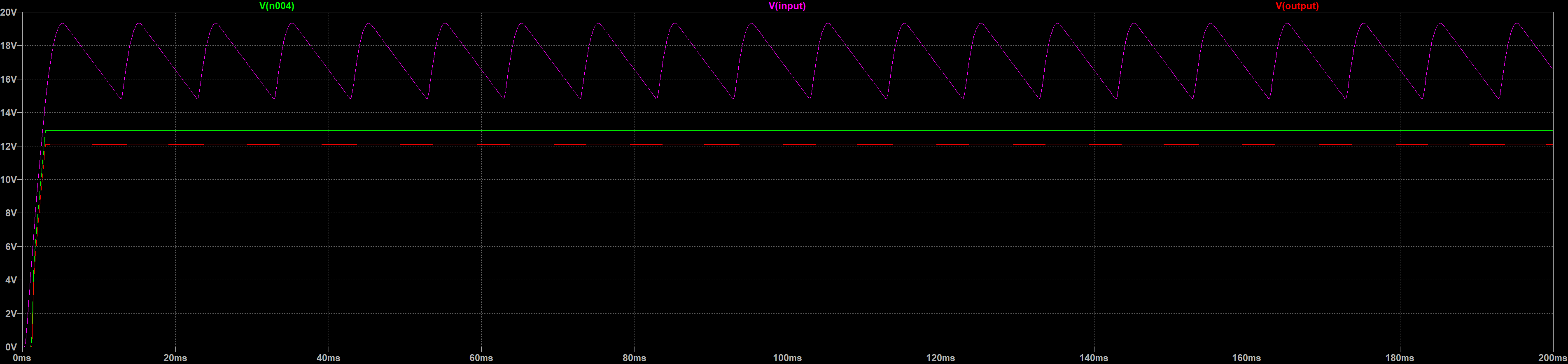 En la figura siguiente se muestra la corriente por el regulador cuando se consume dos amperios a la salida: