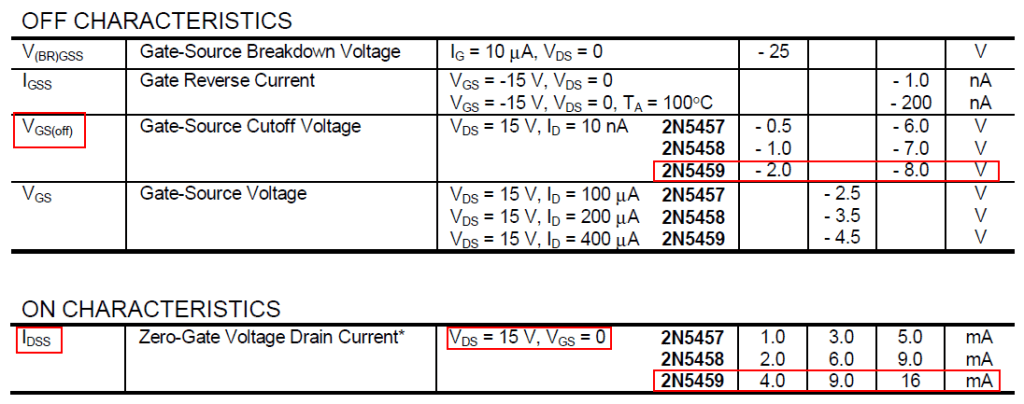 La VGS(off) nos sale aproximadamente 5, lo que queda dentro de los margenes, mientras que la IDSS nos sale 8.2 mili-amperios, lo que queda también dentro de los margenes del datasheet.