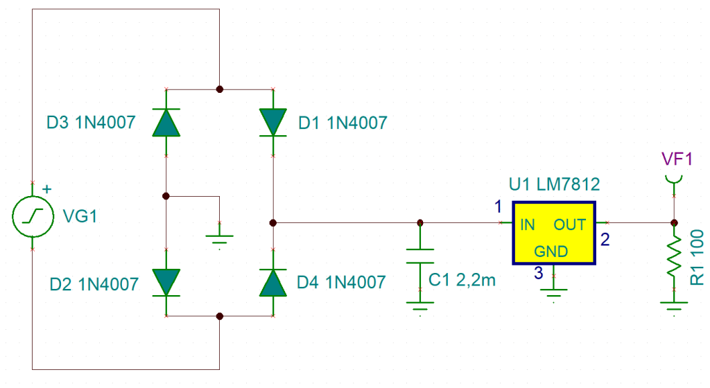 Sea el siguiente circuito que incorpora un regulador que no existe aun en la librería de componentes de Tina.