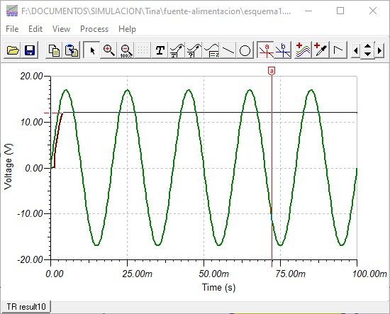 Resulta que el regulador lo he tenido que importar de un NetList de spice, ya que Tina 9, como he dicho antes no tiene dicho modelo.