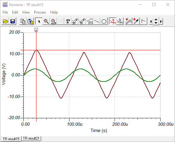 En la simulación, no se aprecia distorsión o es muy leve a esa frecuencia. Voy a mostraros la distorsión que hay en 10 kilohercios: