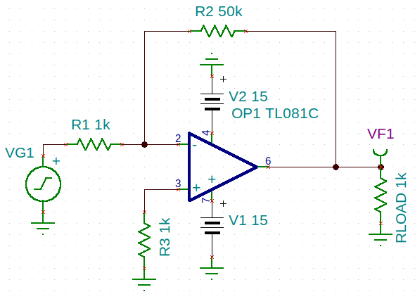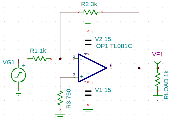 Hacemos R3 igual a R1, ya que R2 es muy elevada (50k). La salida de la simulación del transitorio será la siguiente: