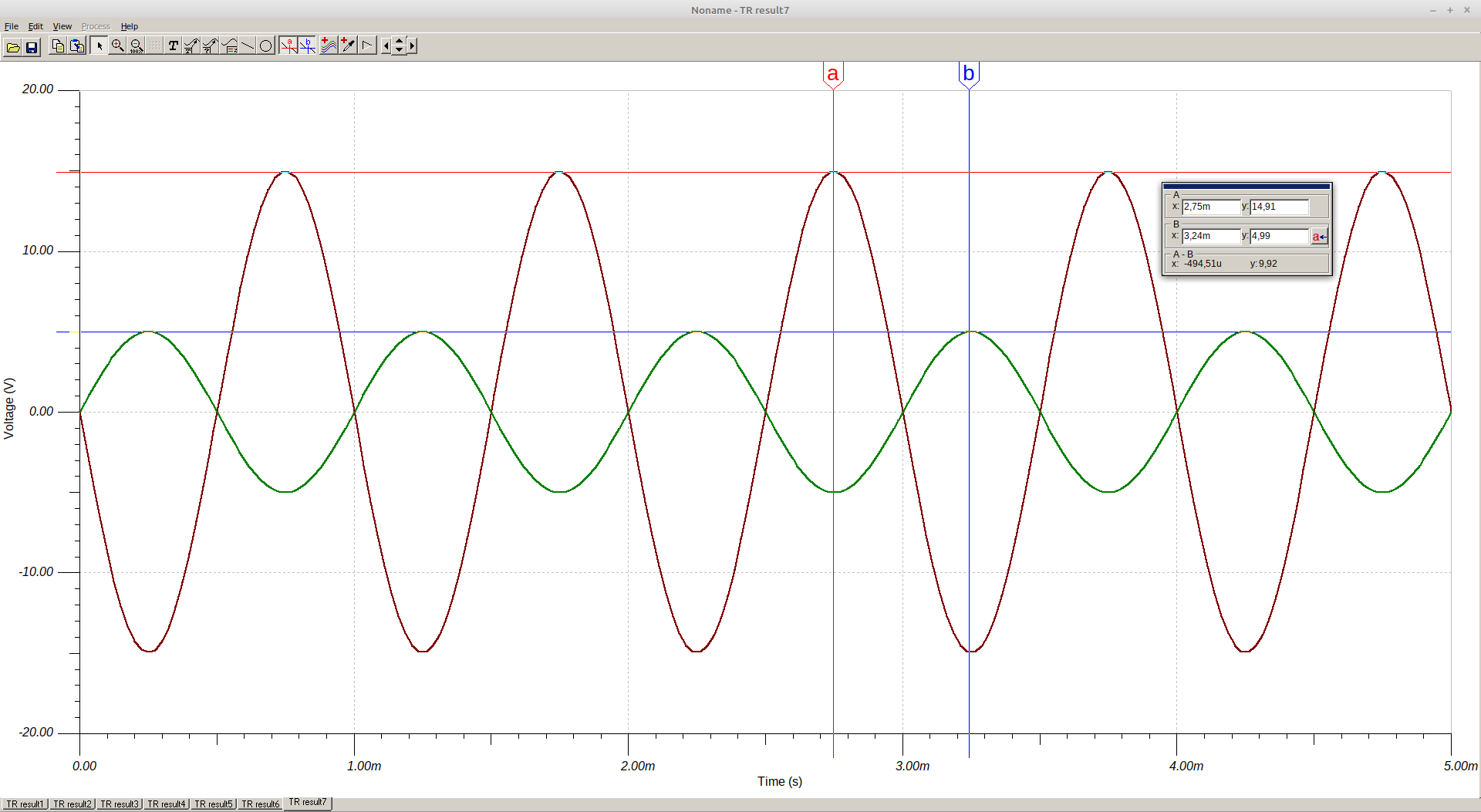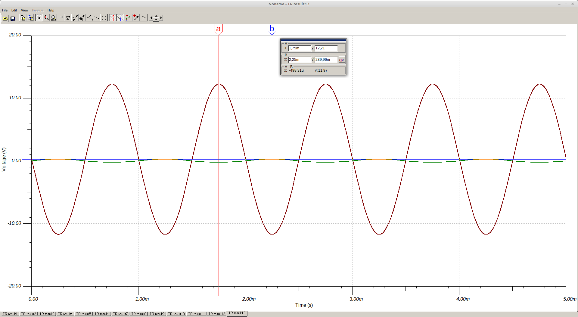 Vamos a subir la tensión de alimentación a 18 voltios, y vamos a simular de nuevo para comprobar que esta vez la distorsión no aparece: