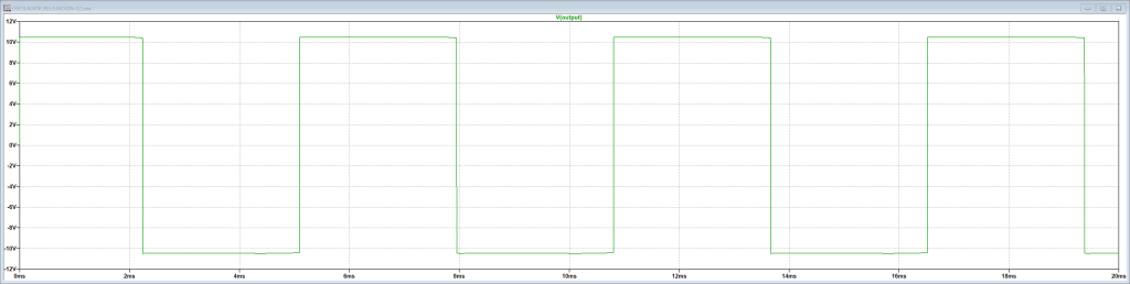 El problema sigue apareciendo. ¡Ya está! El problema tiene que estar en R que es demasiado baja, y la carga del condensador influye en la salida. Cambio R por 10K y obtengo la siguiente salida: